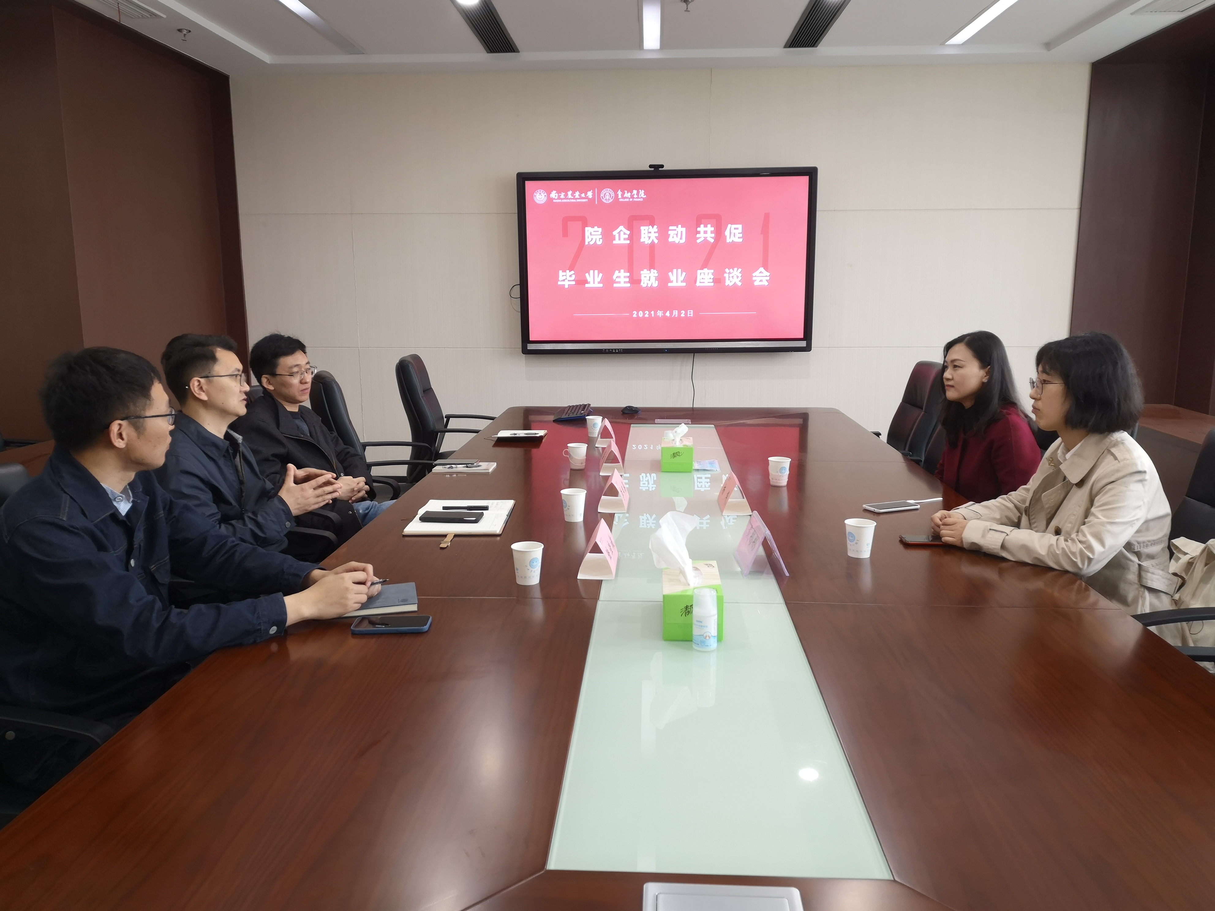 4月2日,德赢官网Vwin与中国银行江苏省分行就共促毕业生就业工作开展座谈交流。中国银行江苏省分行人力招聘团队主管杨烨、职员戴彤彤一行到访德赢官网Vwin,德赢官网Vwin党委副书记李日葵、金融系盛天翔老师、辅导员陆佳俊、李迎军参加座谈。