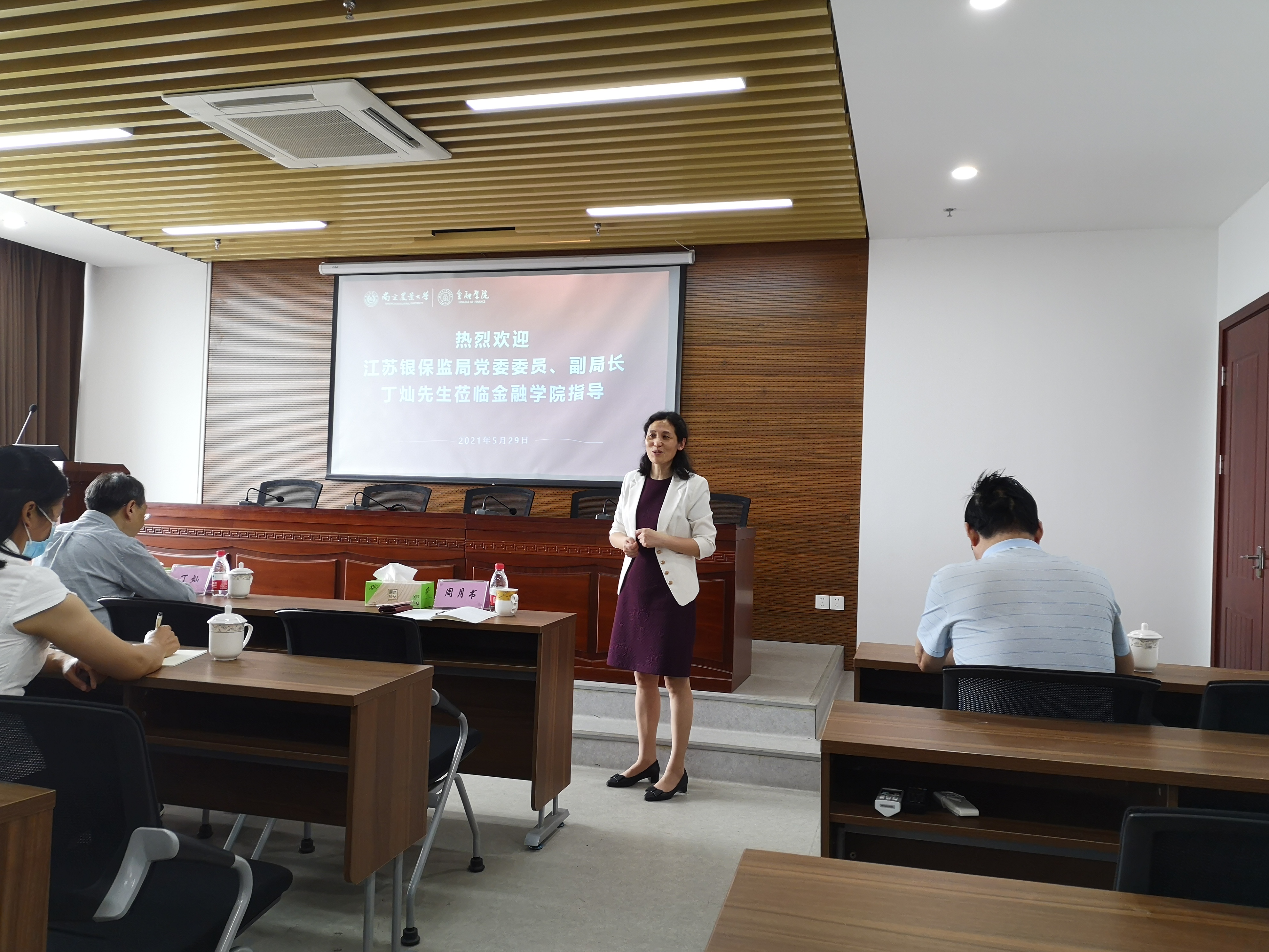 江苏省银保监局党委委员、副局长丁灿做学术报告
