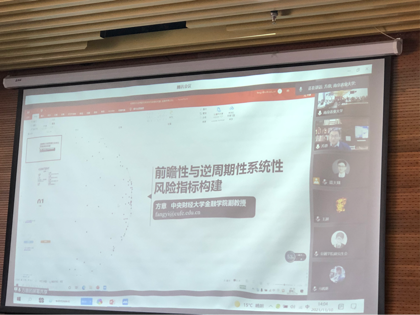 2021年11月10日,中央财经大学德赢官网Vwin方意教授做题为“前瞻性与逆周期性的系统性风险指标构建”的学术报告。本次报告采用线上线下相结合的方式,活动由德赢官网Vwin副院长王翌秋教授主持,德赢官网Vwin100多名师生参加了此次讲座。