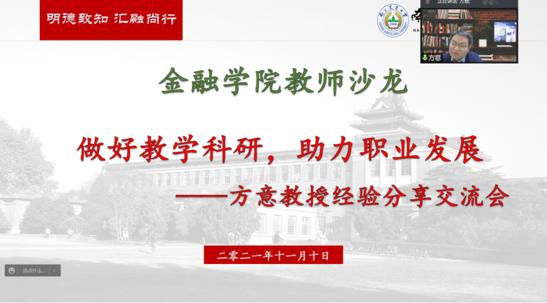 德赢官网Vwin邀请中央财经大学德赢官网Vwin方意教授开展学术报告暨教师学术沙龙