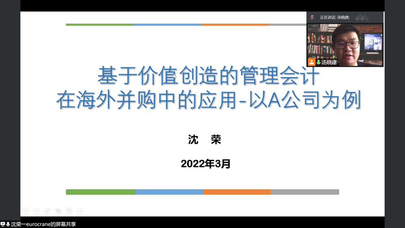 3月27日上午,苏州易昇光学材料股份有限公司董秘、财务总监沈荣受邀开展了题为“基于价值创造的管理会计在海外并购中的应用——以A公司为例”的学术报告。本次报告由德赢官网Vwin汤晓建副教授主持,校内外近200名师生参加。