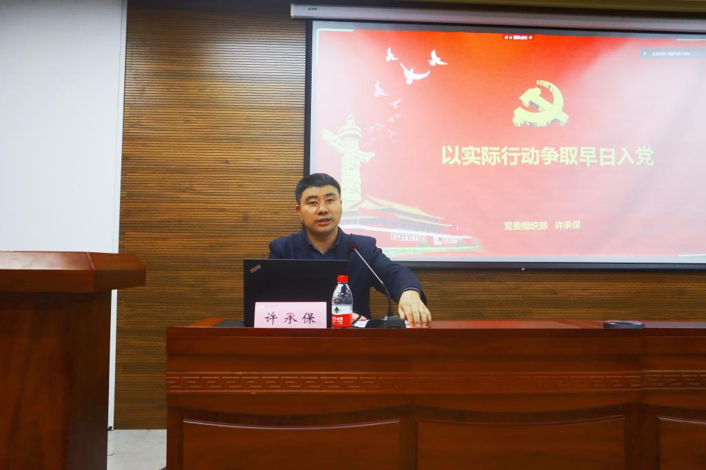 许承保以“用实际行动争取早日入党”为题为学员们讲授开班第一课。第一课从“我们为什么要入党”这个问题引入,要求同学们端正入党动机、提升党性修养,并介绍了学校党校的培训工作。第二部分详细讲述了中国共产党的使命任务和习近平总书记对广大青年提出的殷切希望。许承保鼓励同学们要以实际行动争取早日入党,努力成长为堪当民族复兴重任的时代新人。