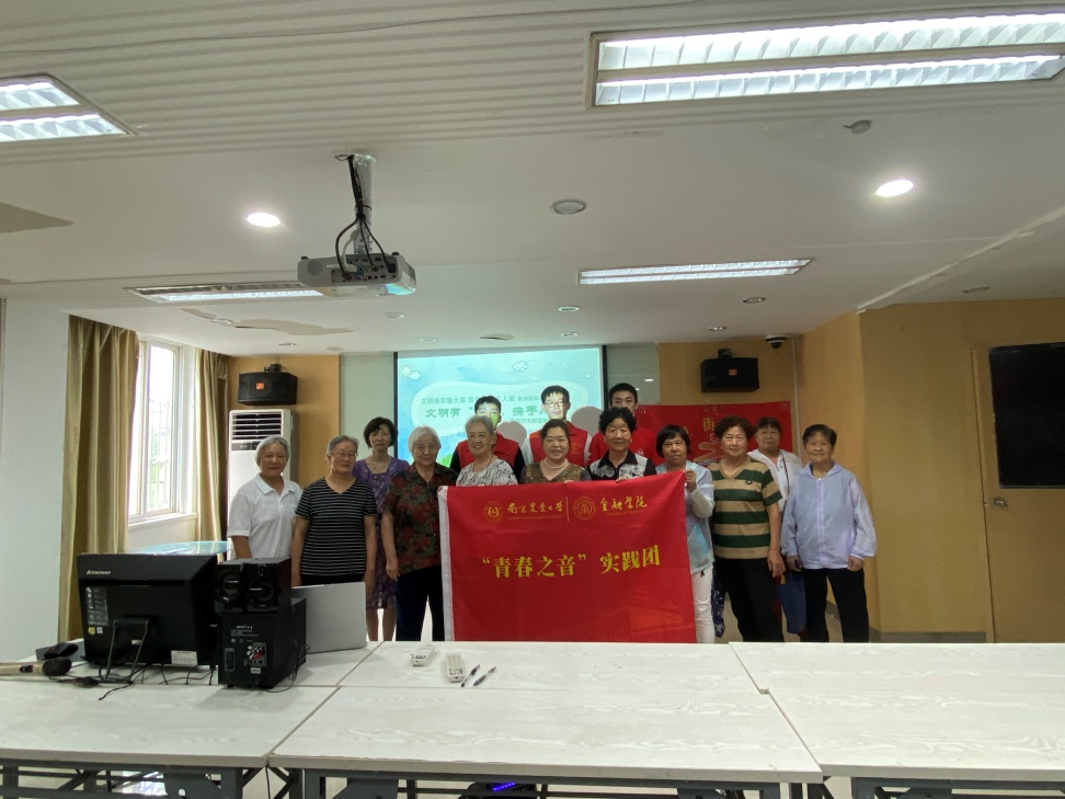“青春之音”实践团以探寻中国共产党人的初心与使命、弘扬中国共产党精神谱系为目标,开展党的二十大精神宣讲和“五老”访谈活动。实践团走进渡江胜利纪念馆、新四军四师军部旧址等爱国主义教育基地参观,深刻感受中国共产党领导中国人民浴血奋战,最终取得革命胜利的伟大革命精神。实践团还前往了月牙湖、康定里、孝陵卫等三个社区,拜访了抗美援朝老战士叶文福、从教30余年的老教师洪金玉等数位老一辈党员,共同回顾了那段充满艰苦奋斗与热血昂扬的峥嵘岁月,在他们身上同学们看到了老一辈人对平凡岗位的默默坚守与对国家人民的无私奉献。同时,实践团围绕党的二十大主题,通过PPT宣讲的形式,以学习习近平新时代中国特色社会主义思想为核心内容,从世界百年未有之大变局加速演变、中华民族伟大复兴进入关键时期、中国共产党在革命性锻造中坚定走在社会前列、科学社会主义在二十一世纪的中国焕发出强大生机活力等多个方面展开详细阐述,带领广大社区群众认识新时代,感悟新时代下的新思想与新发展。