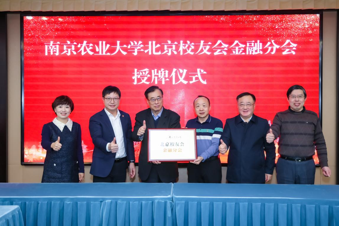 翟虎渠、单正丰、吴培均、张金华、姚科艳、南农大金融行业分会会长刘荣茂共同为北京校友会金融分会揭牌。