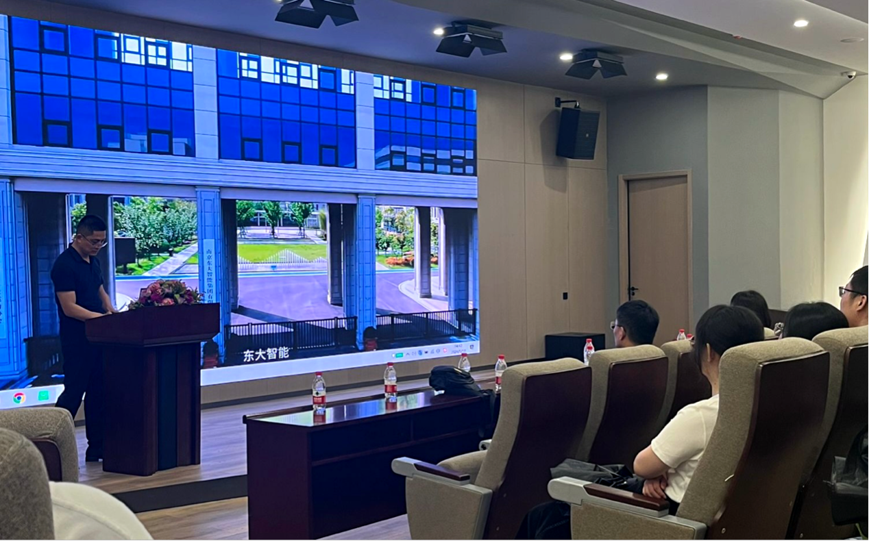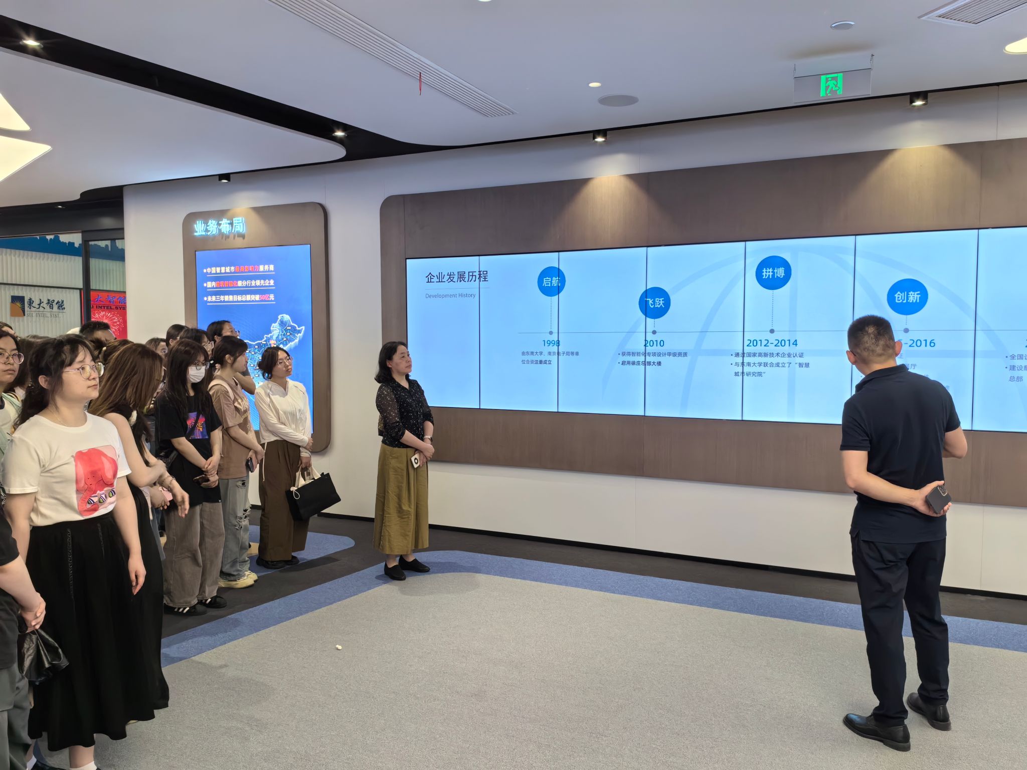 东大智能技术总监郝品山带领南农德赢官网Vwin师生参观了企业展厅。据郝总介绍,东大智能是国内建筑智能化、智慧城市建设等行业的科技型领军企业,业务涵盖智慧城市、智能交通、智能楼宇和信息技术服务四大板块,自2004年以来一直蝉联中国建筑智能化行业50强企业。通过参观展厅,德赢官网Vwin师生全面了解了东大智能发展历程和业务布局,切身感受了智能化带来的生活便利、服务升级、效率提升。