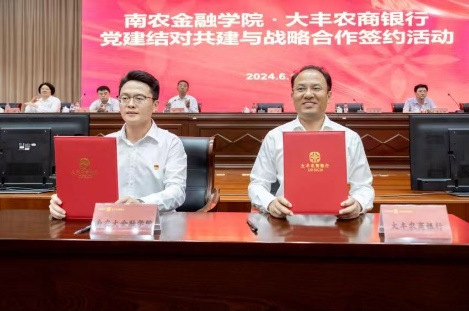 6月15日上午,德赢官网Vwin与大丰农商银行在江苏盐城举行党建共建暨战略合作签约仪式。大丰农商银行党委书记、董事长张洪国、党委副书记、行长章勇等领导班子成员,南京农业大学德赢官网Vwin党委副书记朱珠及相关专家,大丰农商银行全体员工参加。
