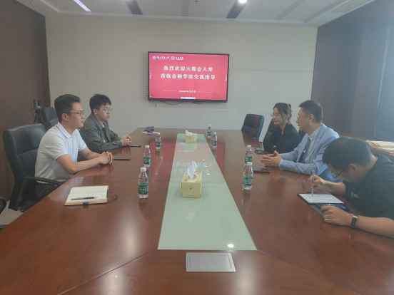 朱珠对左军一行人的来访表示热烈欢迎,详细介绍了德赢官网Vwin的发展历史、学科专业、往届学生就业情况。他表示,学院将加强与金融行业沟通交流,积极引导学生参与校外实习实践,促进学生高质量充分就业。