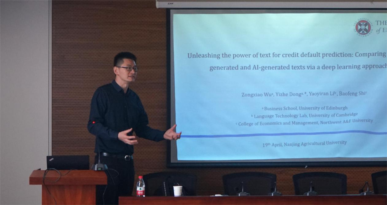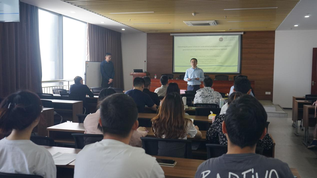 4月19日上午,英国爱丁堡大学副教授、博士生导师董轶哲受邀为德赢官网做题为“Unleashing the power of text for credit default prediction: Comparing human-generated and AI-generated texts via a deep learning approach”的学术报告。报告由金融系主任彭澎副教授主持,学院近百名师生参加。
