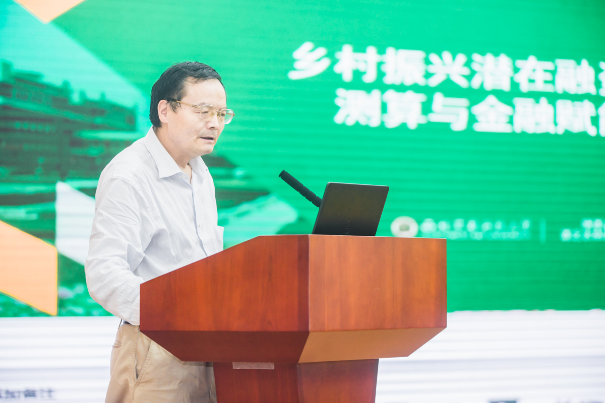 西北农林科技大学经济管理学院教授罗剑朝作了“乡村振兴潜在融资需求测算与金融赋能政策”主题报告。他系统回答了如何测算乡村振兴潜在融资总需求及分析得出的潜在总需求结构特征。他从“科技共生、互相促进”的总体思路出发,提出要强化货币政策、优化财政政策、加大金融科技支持力度、建设涉农信用信息数据平台和监管考核等全方位多角度的政策建议。