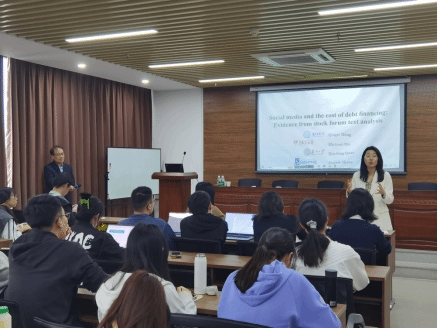交流讨论环节,学院师生与章教授就美国会计毕业生就业情况、新兴技术对国内会计专业学生的影响、选题新颖的标准、投资者债券偏好对利差影响等展开热烈讨论与交流。