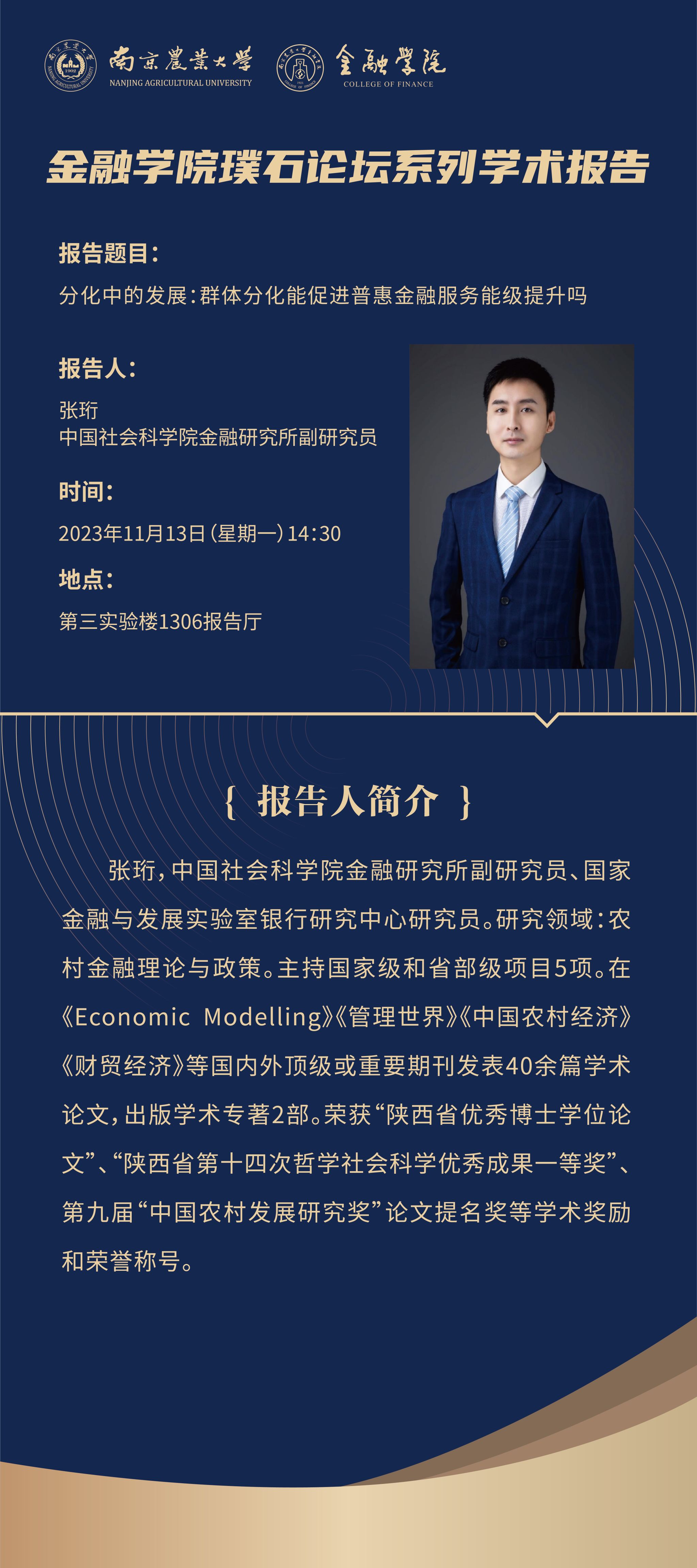 讲座预告(11.13)丨分化中的发展:群体分化能促进普惠金融服务能级提升吗