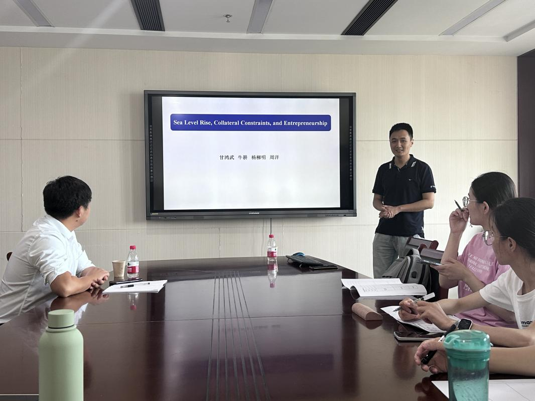 5月22日上午,武汉大学经济与管理学院副教授周洋受邀为德赢官网做题为《海平面上升、抵押品限制和创业》的学术报告。报告由德赢官网Vwin吴雨教授主持,学院30余名师生参加。