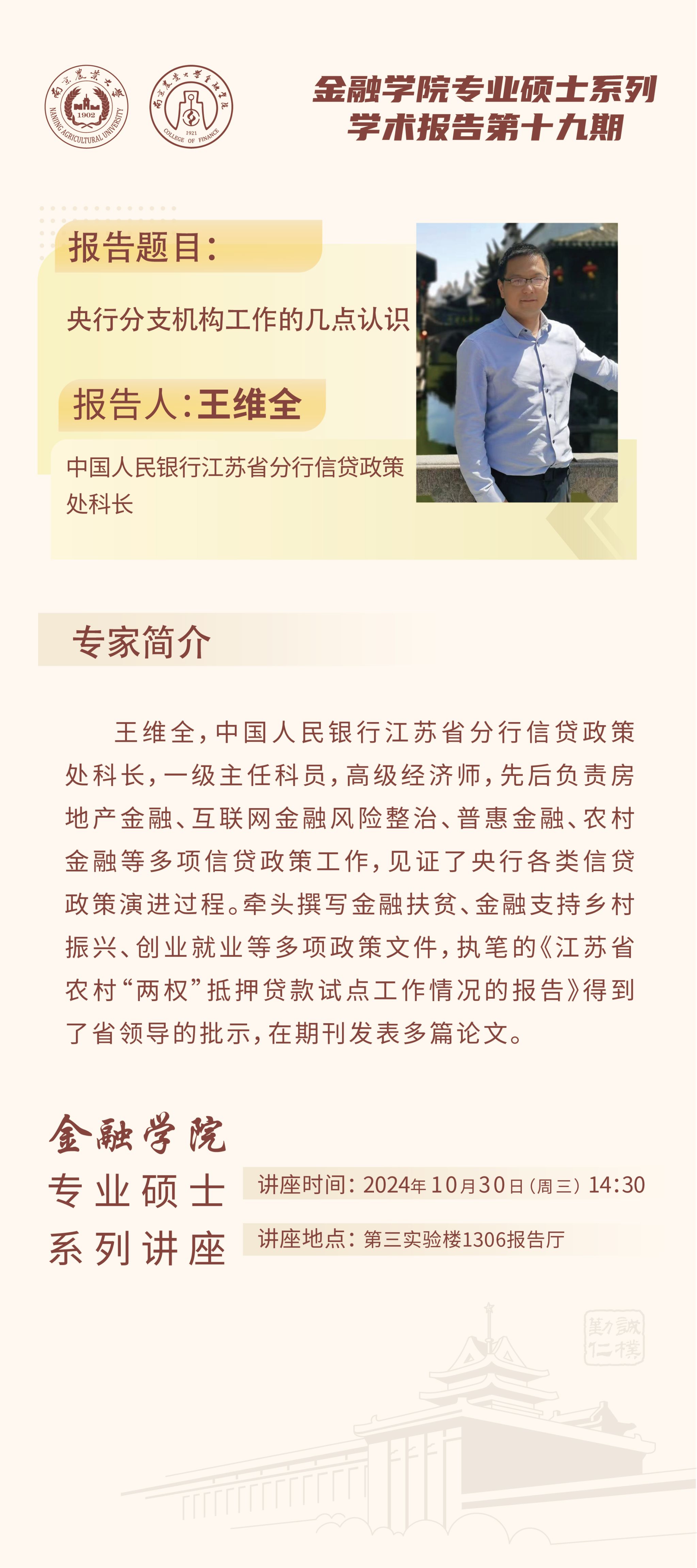 讲座预告(10.30)丨央行分支机构工作的几点认识