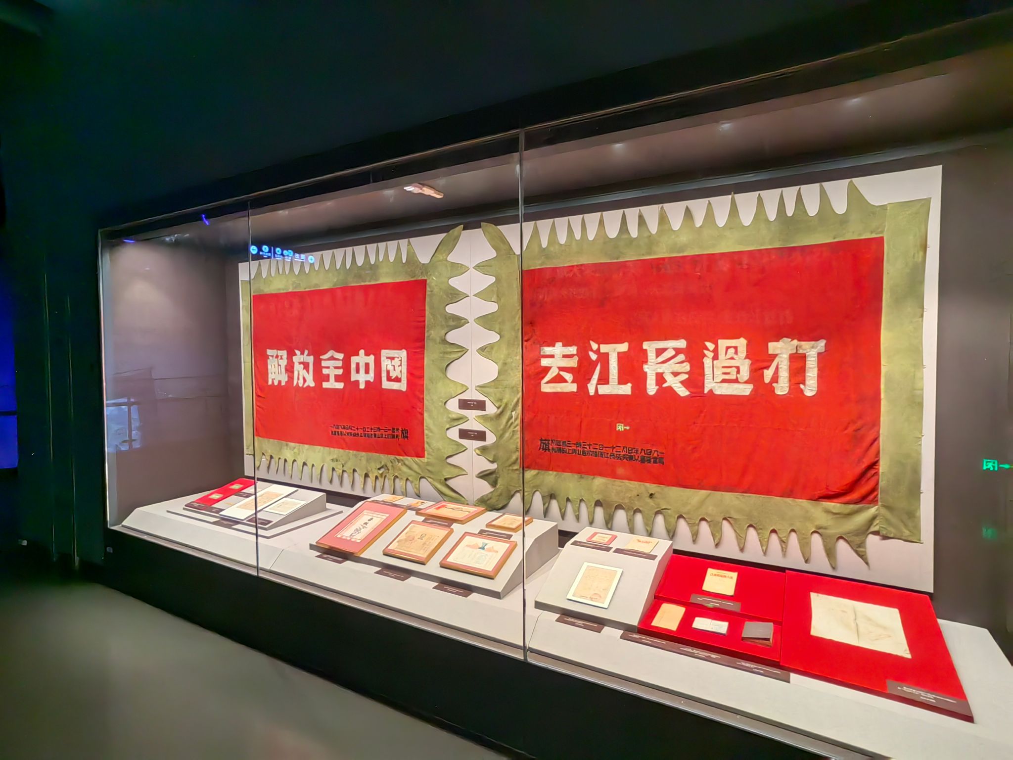 走进主馆区,展览由“运筹帷幄,坚决‘打过长江去’”“决战千里,百万雄师过大江”等五部分组成,通过场景模拟、实物、历史影像、文物、图片,包括口述历史,全方位展示了渡江战役及南京解放的这段历史。